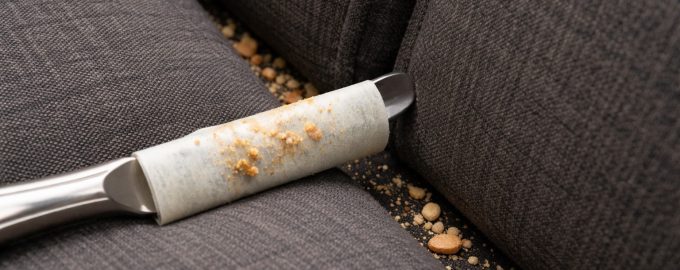 „O notă cheie: dacă firimiturile ajung sub nasturi sau cusături decorative, utilizați bandă de pictor. Aceasta are o aderență optimă – este excelentă la ridicarea resturilor mici, dar nu strică structura țesăturii și nu lasă reziduuri lipicioase.”