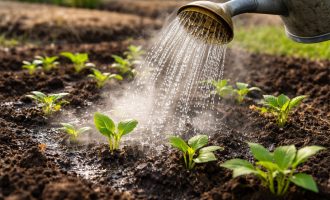 Da, picăturile de apă de pe flori interferează cu polenizarea și pot provoca boli fungice, deci udați strict sub rădăcină.