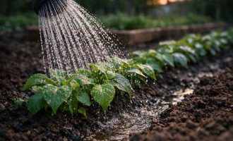 Irigați cercul de tufe până la o adâncime de 40 cm.