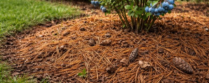 Mulcirea corespunzătoare cu ace vă permite să reduceți udarea la jumătate și să renunțați complet la erbicidarea golurilor. Plantele care cresc sub un strat de ace căzute prezintă o creștere mai viguroasă a lăstarilor și formează fructe de pădure mari și dulci. Acesta este un mod cât se poate de natural de a imita condițiile din pădure în care afinele se dezvoltă cel mai bine.