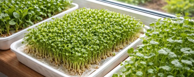 Dacă aveți nevoie rapid de multe verdețuri, uitați de cutiile grele de pământ din primul pas. Pentru creson и microgreens metoda fără sol este ideală.