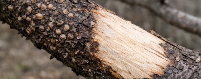 Un dăunător mort poate cădea cu ușurință de pe scoarță atunci când este apăsat ușor, iar sub coaja sa nu există țesut umed și viu.