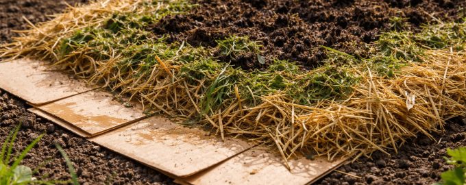 Acoperiți solul cu foi de carton suprapuse (cu o suprapunere de cel puțin 15 cm) pentru a nu da buruienilor nicio șansă să pătrundă prin spațiile libere.