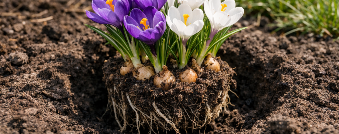 „Secretul: Dacă nu puteți transplanta crocus acum, faceți următoarele potasiu-fosfor fertilizați de îndată ce frunzele au ofilit. Acest lucru va ajuta bulbul să își „amintească” programul de înflorire, chiar și atunci când lumina este insuficientă.”