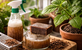 Săpunul va ajuta soluția să rămână pe frunze în loc să se scurgă în pământ.