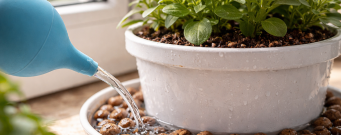 Utilizați numai seringă sau pulverizator pentru irigare punctuală în marginea recipientului.