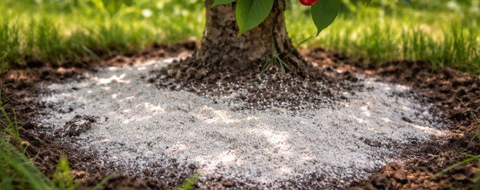 Răspândiți pulberea pe proiecția coroanei, nu doar la nivelul trunchiului.