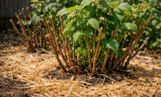 Un strat de mulci de 5 centimetri reduce evaporarea umidității și menține o temperatură stabilă în zona rădăcinilor.