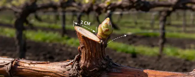 Înclinația tăieturii trebuie să fie îndreptată departe de boboc, astfel încât pasoka („lacrimile” viței de vie) să nu inunde ochiul.
