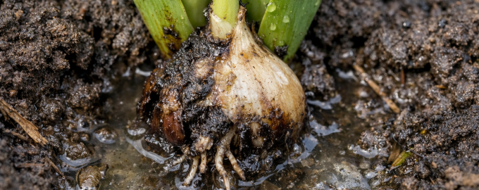 Când apa devine prea multă, oxigen nu mai ajunge la rădăcini. Bulbul se sufocă literalmente. În loc să scoată mugurele, acesta își cheltuiește toate resursele pentru a lupta împotriva infecțiilor fungice și a putrezirii.