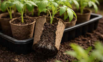 Pregătirea adecvată a patului în primăvară elimină nevoia de îngrășăminte în timpul procesului de creștere. Celulele de carton se descompun în timp, devenind materie organică suplimentară pentru sol.