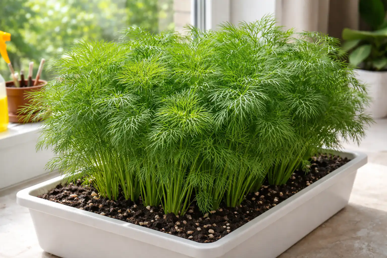 Principalul secret al succesului este să nu semănați mărarul în ghivece adânci. Sistemul său radicular este superficial, astfel că în tăvi late și puțin adânci umiditatea este distribuită uniform, ceea ce exclude apariția mucegaiului la baza tulpinii.