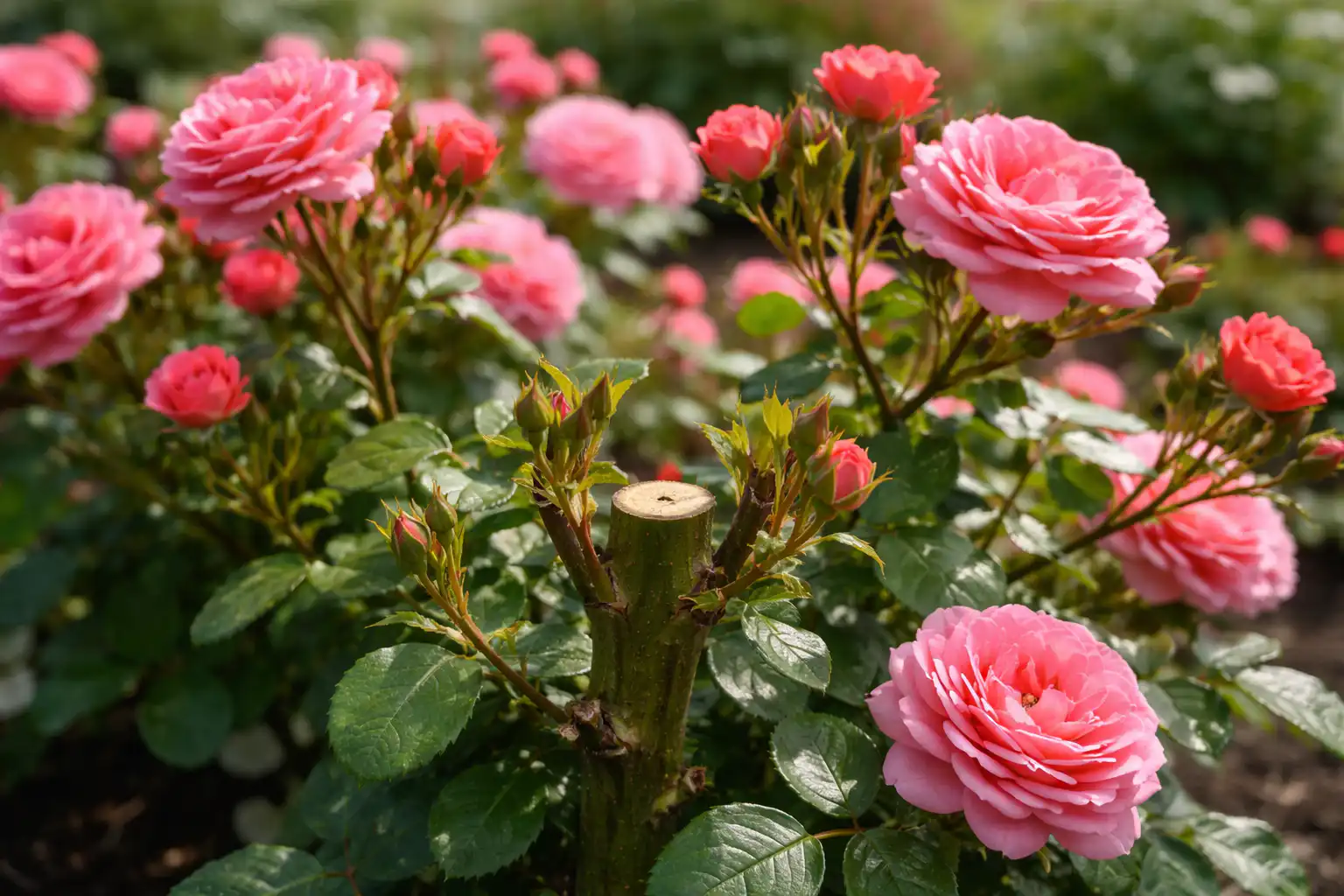 Secretul constă în dominanța apicală. Dacă lăsăm un lăstar lung, trandafirul își va îndrepta toată forța spre mugurele cel mai de sus. De îndată ce scurtăm o ramură, mugurii inferiori se trezesc și dau naștere unor lăstari noi, puternici.