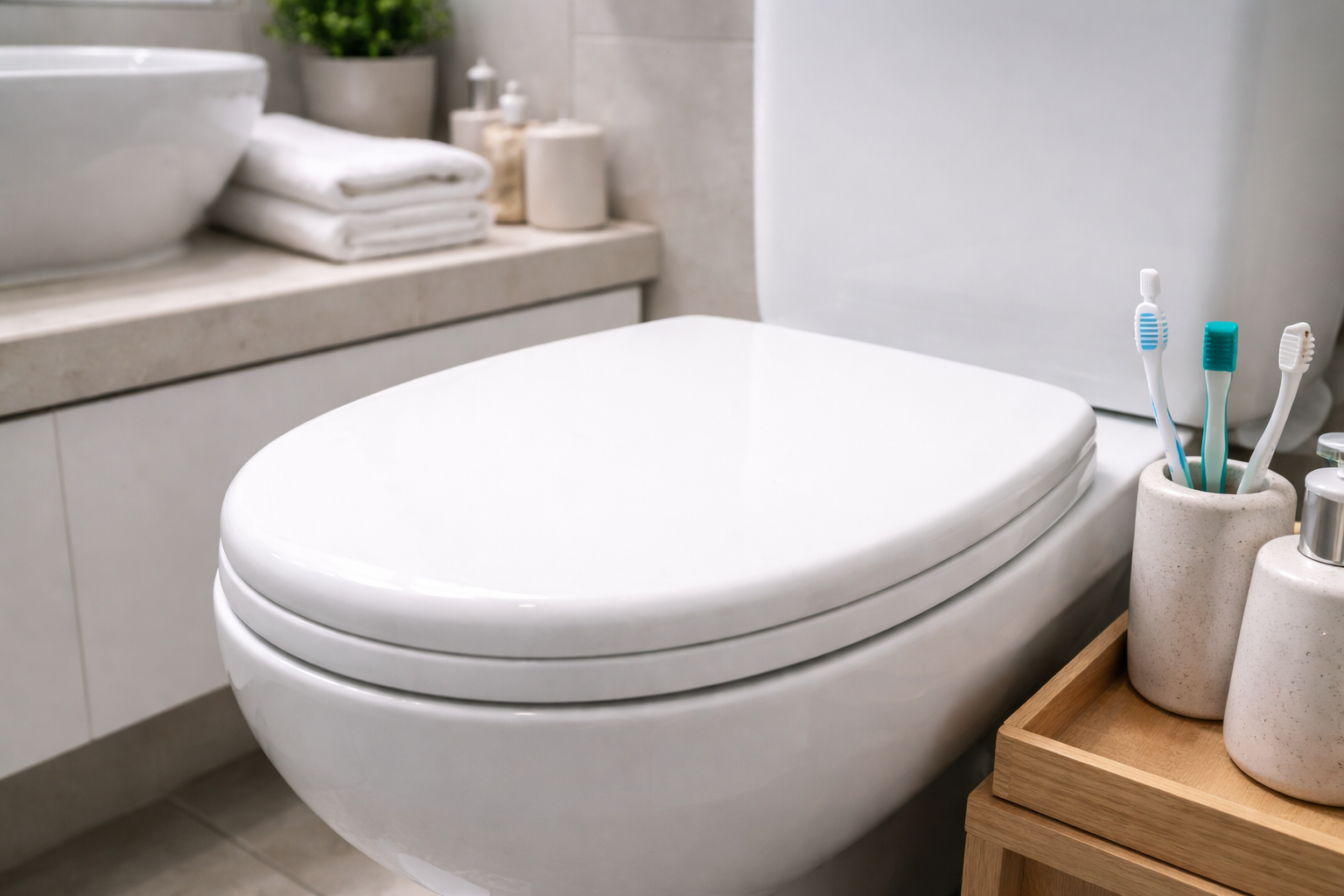 „Nuanță secretă: dacă vă depozitați periuțele de dinți la mai puțin de un metru și jumătate de toaletă, un capac închis nu este doar estetic, ci o chestiune de biosecuritate pentru familia dvs.”