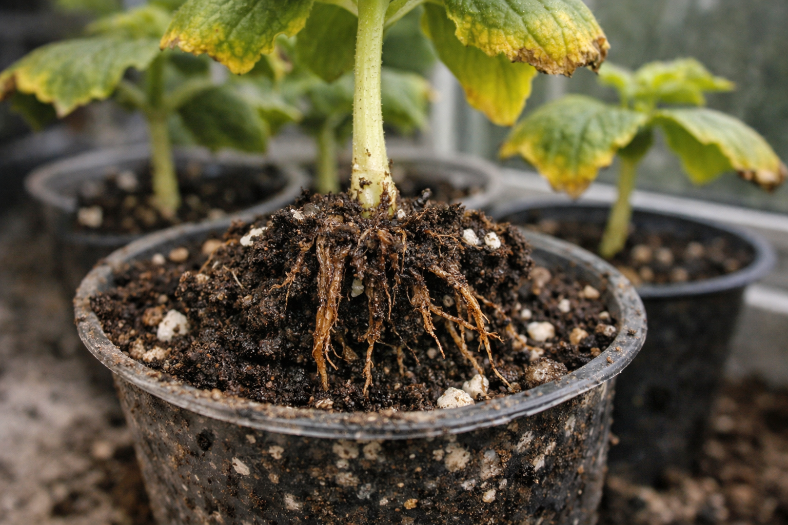 Problema constă în antagonismul ionic. Când puneți prea mult potasiu într-un ghiveci strâns, acesta elimină literalmente magneziul și calciul. Ca urmare, planta suferă de o deficiență, chiar dacă solul este bogat în micronutrienți.