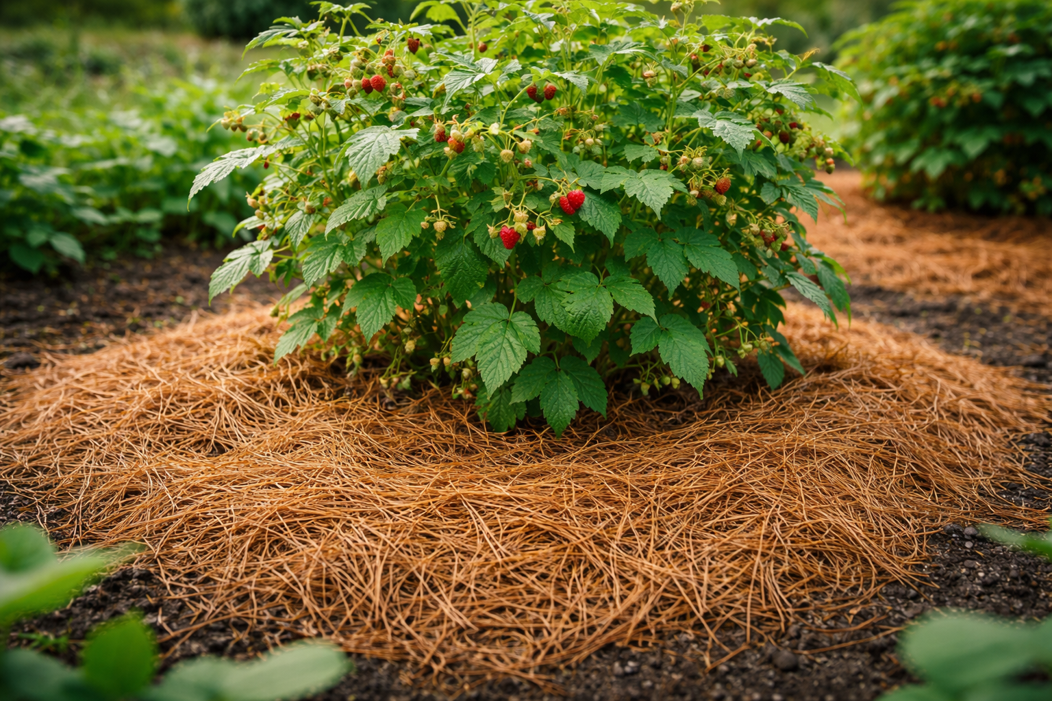 Utilizarea acelor de pin sau de molid nu înseamnă doar mulcire, ci crearea unei bariere naturale și a unui regulator de mediu blând. Spre deosebire de rumeguș, acele de pin nu iau azot din sol în cantități atât de critice, dar suprimă în mod eficient creșterea buruienilor.
