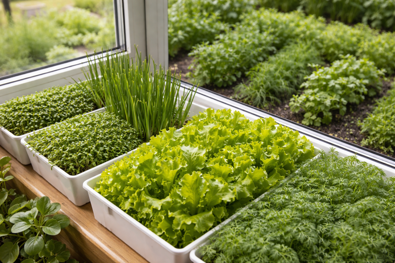 Diferite specii se descurcă cel mai bine în condiții de lumină deficitară frunze de muștar și ceapă normală.