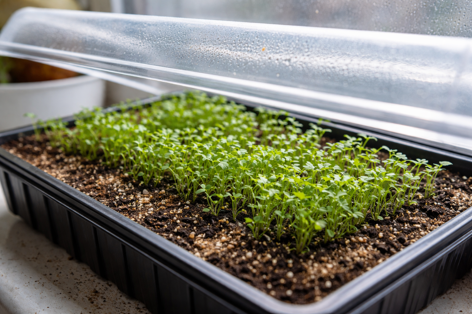 Pulverizarea are doar un efect temporar, este mai bine să puneți un recipient cu apă lângă răsaduri sau să porniți un umidificator.
