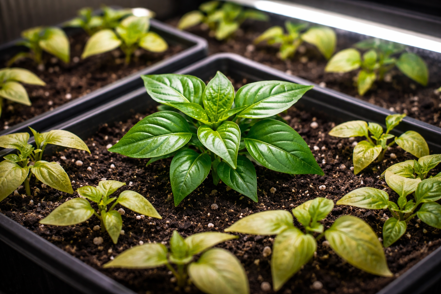 Nuanța mea secretă: dacă răsadul a început să se lumineze, nu este suficient doar să îl mutați la soare. Planta are nevoie de material de construcție pentru regenerarea clorofilei. chelat de fier sau magneziu. Fără acestea, chiar și sub o fitolampă, ardeii vor rămâne palide pentru o lungă perioadă de timp.