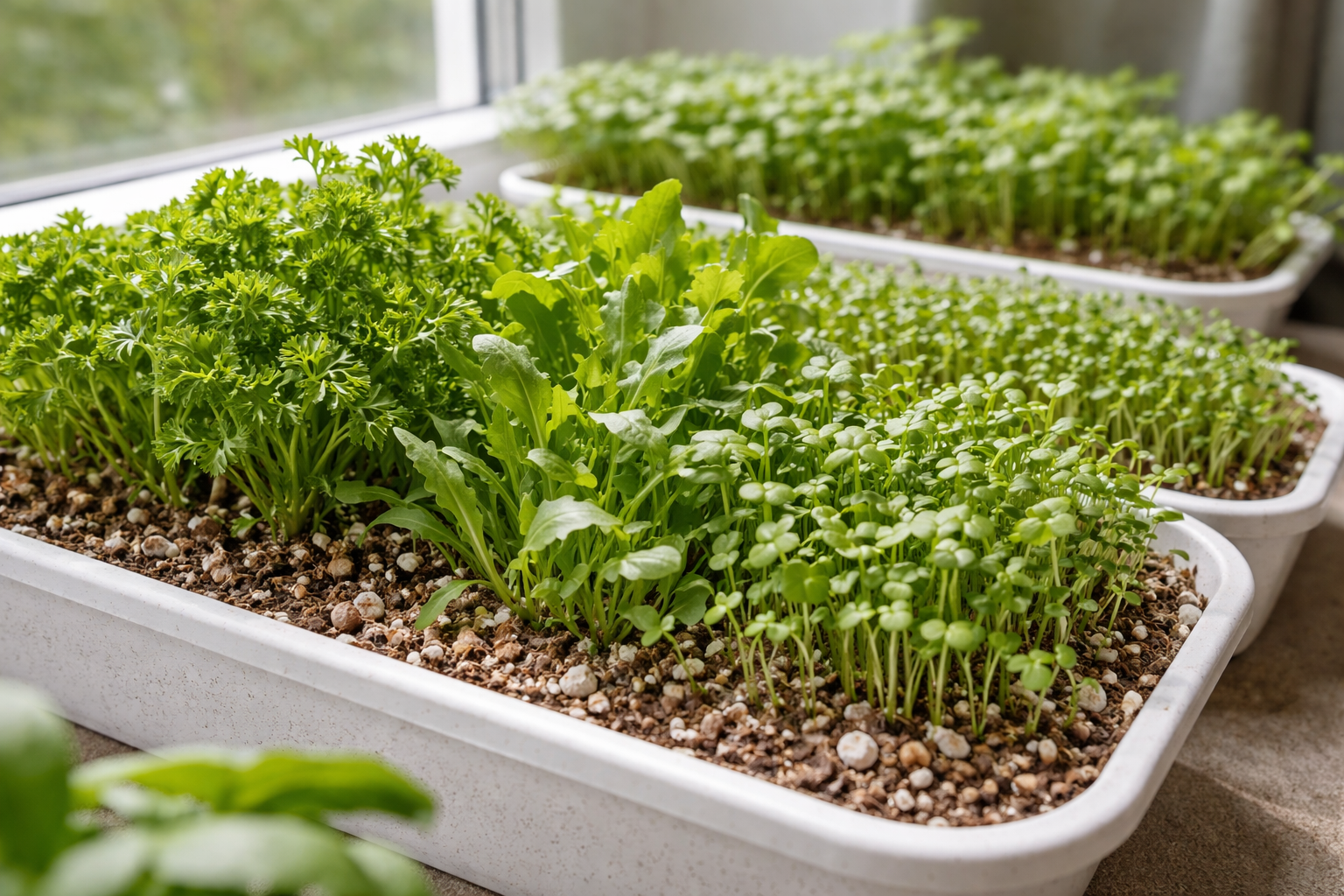 Grădina de legume de acasă de pe pervazul ferestrei vă permite să obțineți vitamine proaspete pe tot parcursul anului cu un efort minim. Combinația corectă de sol ușor, regim de temperatură și lumină reflectată garantează rezultate stabile chiar și pentru începători.
