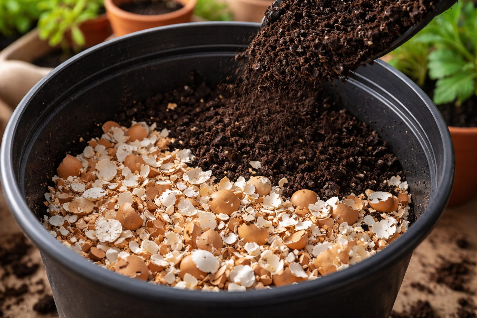 Utilizarea cojilor de ouă ca strat de drenaj nu este doar o economie de costuri, ci și o mișcare strategică pentru sănătatea rădăcinilor. Spre deosebire de pietre sau materiale sintetice, cojile au o structură poroasă care permite rădăcinilor să respire. În același timp, aceasta dă treptat carbonat de calciucare este vital pentru formarea de tulpini puternice primăvara.