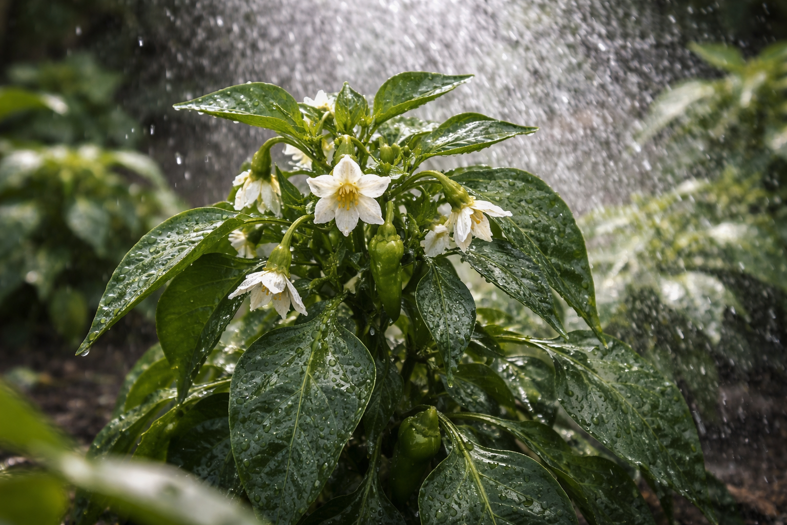 În timpul stresului termic, ardeii pierd rapid umiditatea prin frunze, ceea ce blochează aprovizionarea cu calciu și bor a punctelor de creștere. Acest lucru duce nu numai la căderea florilor, ci și la continuarea putrezirea apexului pe puținele fructe care au avut timp să prindă.
