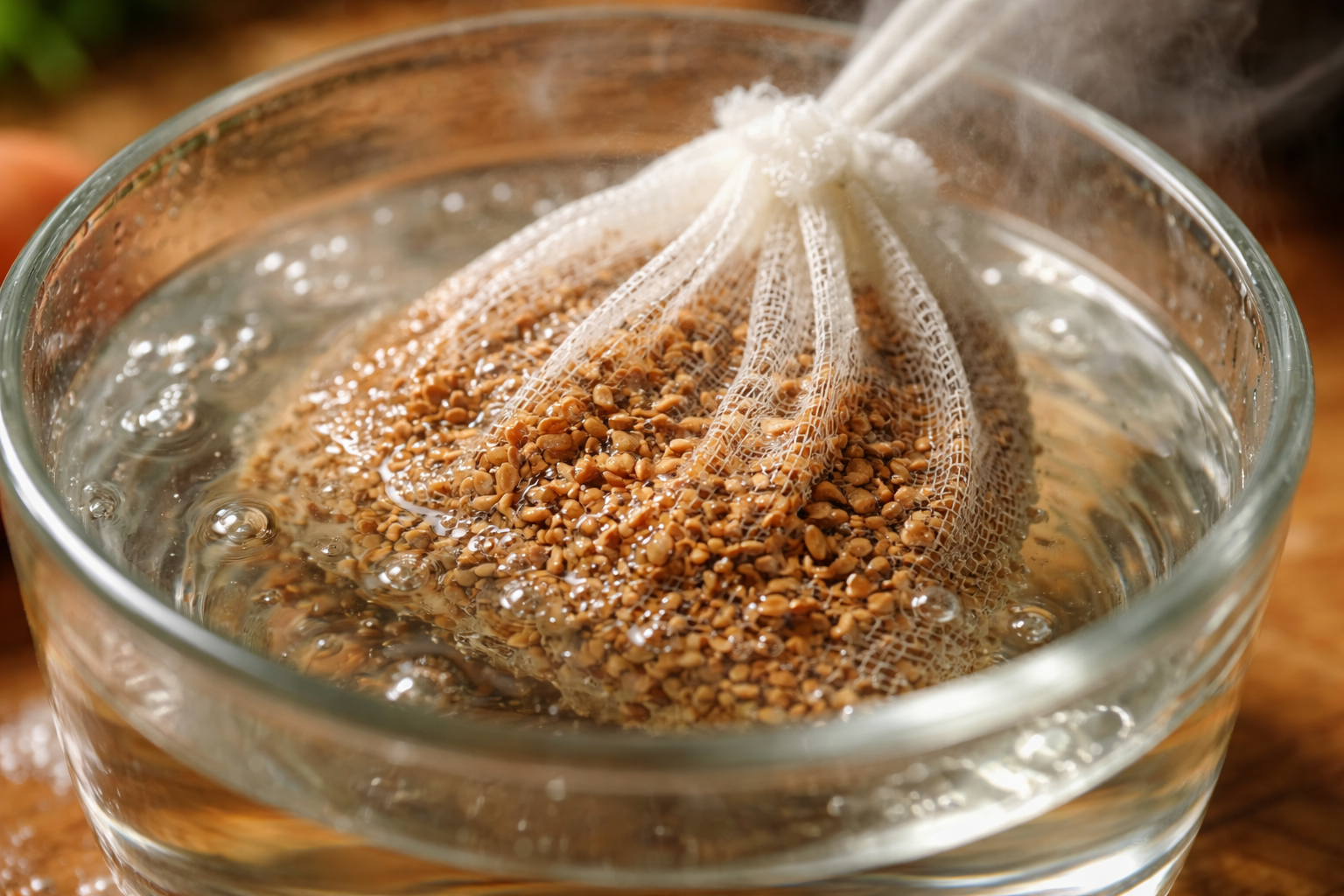 Înmuiați semințele în apă timp de cel mult 20 de minute, amestecând ocazional.