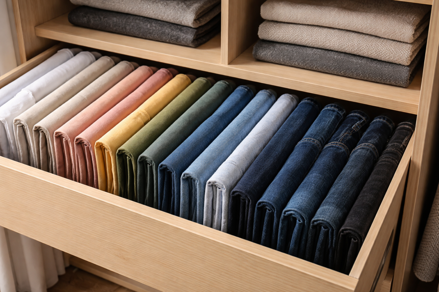 Pentru ca lucrurile să stea pe picioarele lor și să nu se destrame, este important să le împăturiți corect. Această metodă transformă hainele în module dense care încap ușor în organizatoare sau sertare convenționale.