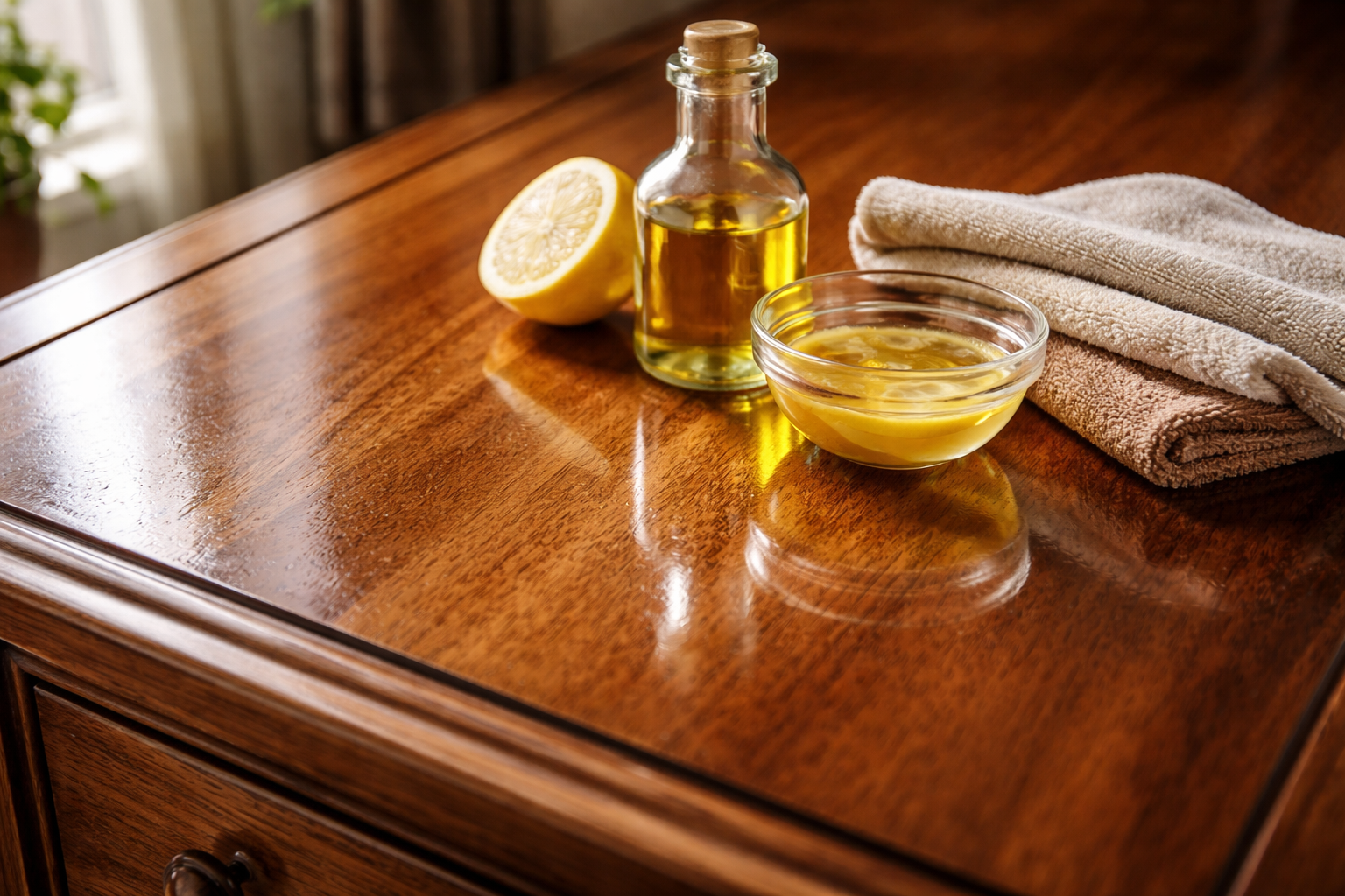 Mulți proprietari de mobilier din lemn fac greșeala gravă de a folosi produse de uz casnic agresive care distrug treptat structura lemnului și îl lipsesc de strălucirea sa naturală. Am încercat zeci de formulări și am ajuns la concluzia că cea mai bună soluție pentru curățarea și hrănirea lemnului se află deja în bucătăria dumneavoastră, iar rezultatul este de mai multe ori superior produselor de lustruit din magazine.