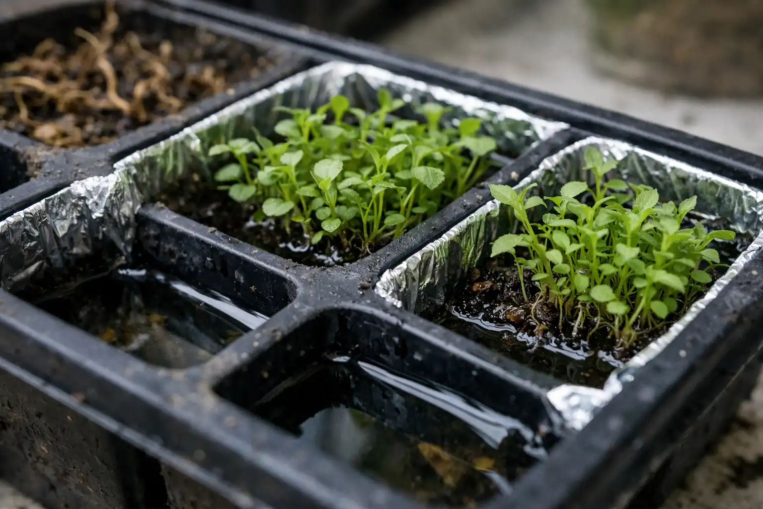 Lipsa găurilor de drenaj în fiecare celulă.