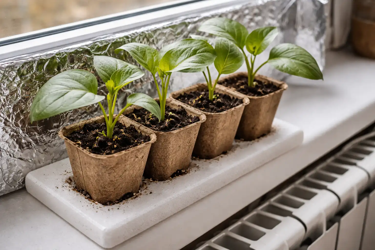 Plasați un ecran de folie sau carton gros între radiator și răsaduri.