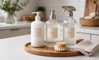 Oțetul neutralizează acumularea alcalină de la detergenți și ajută la evaporarea uniformă a apei, fără a păta.