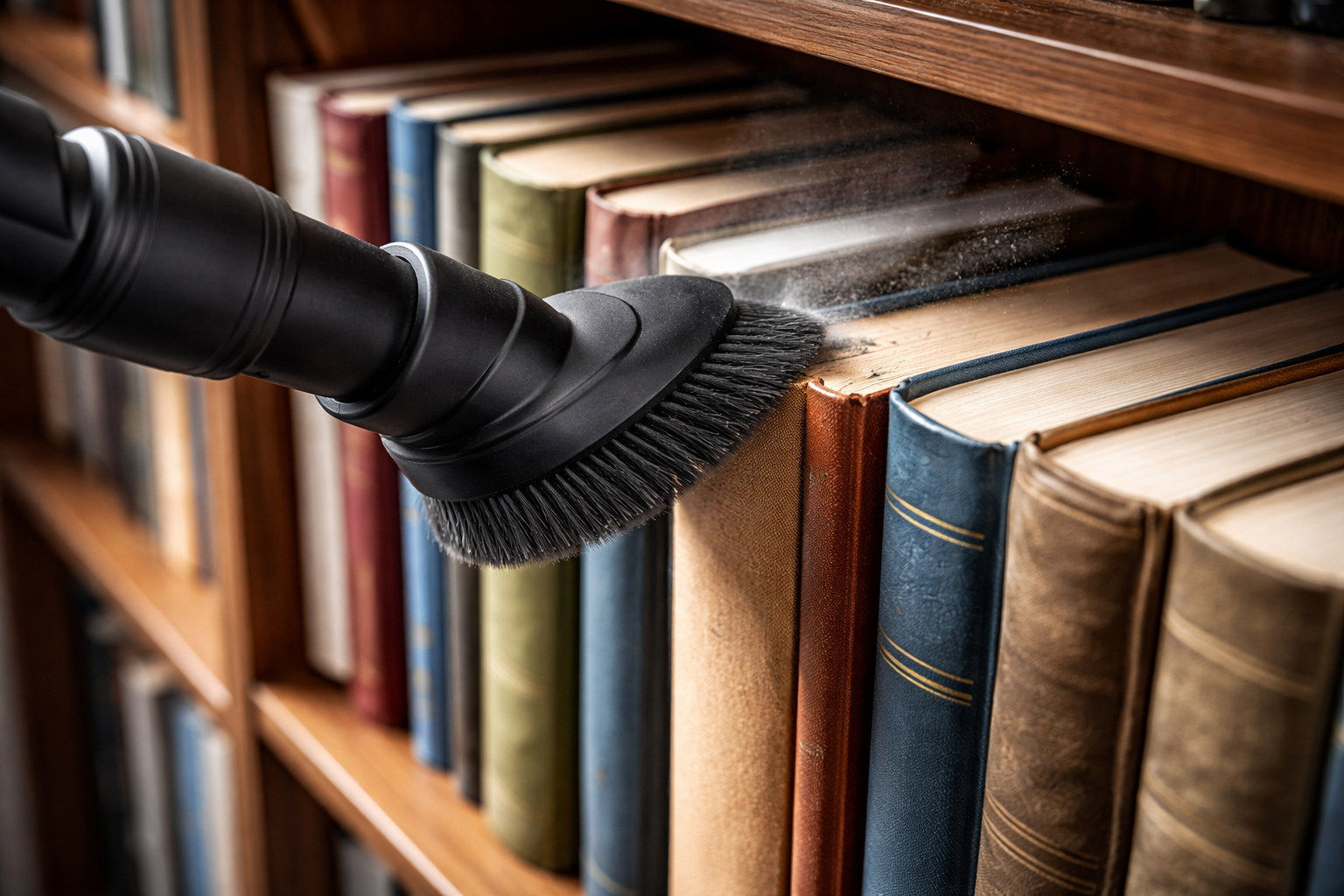 Mulți oameni sunt obișnuiți să își șteargă rafturile cu o cârpă umedă, făcând o greșeală critică care distruge încet edițiile pe hârtie. Curățarea umedă nu face decât să transforme particulele microscopice de piele, sporii fungici și fibrele textile într-o masă lipicioasă care se înfundă adânc în legătorie și ornamente. Singura modalitate de a îndepărta eficient alergenul acumulat și de a preveni distrugerea hârtiei este de a utiliza accesoriul corect pentru aspirator.