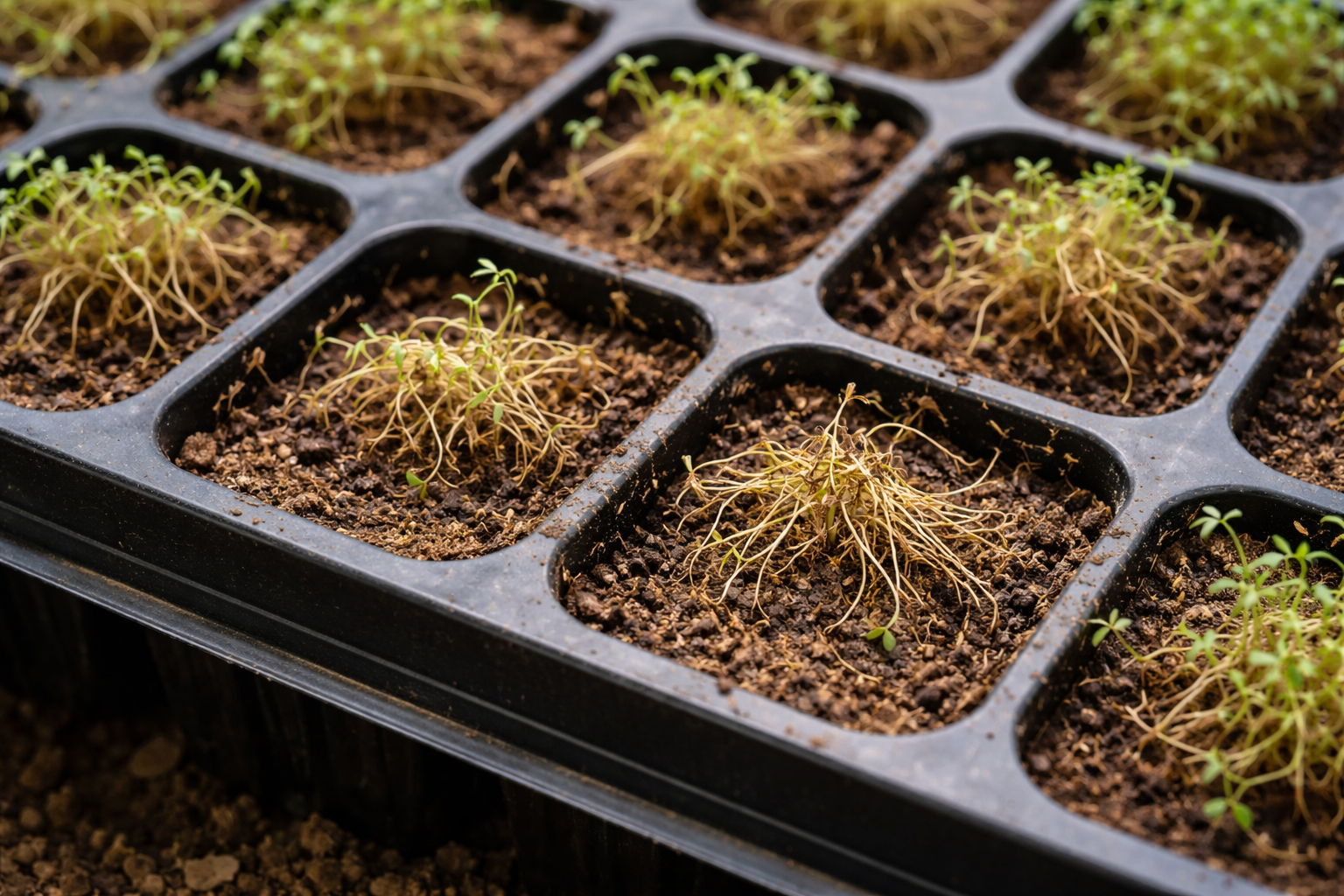 | Volumul celulelor mici | Pierderea rapidă a umidității | Rădăcinile se usucă în 2-3 ore |