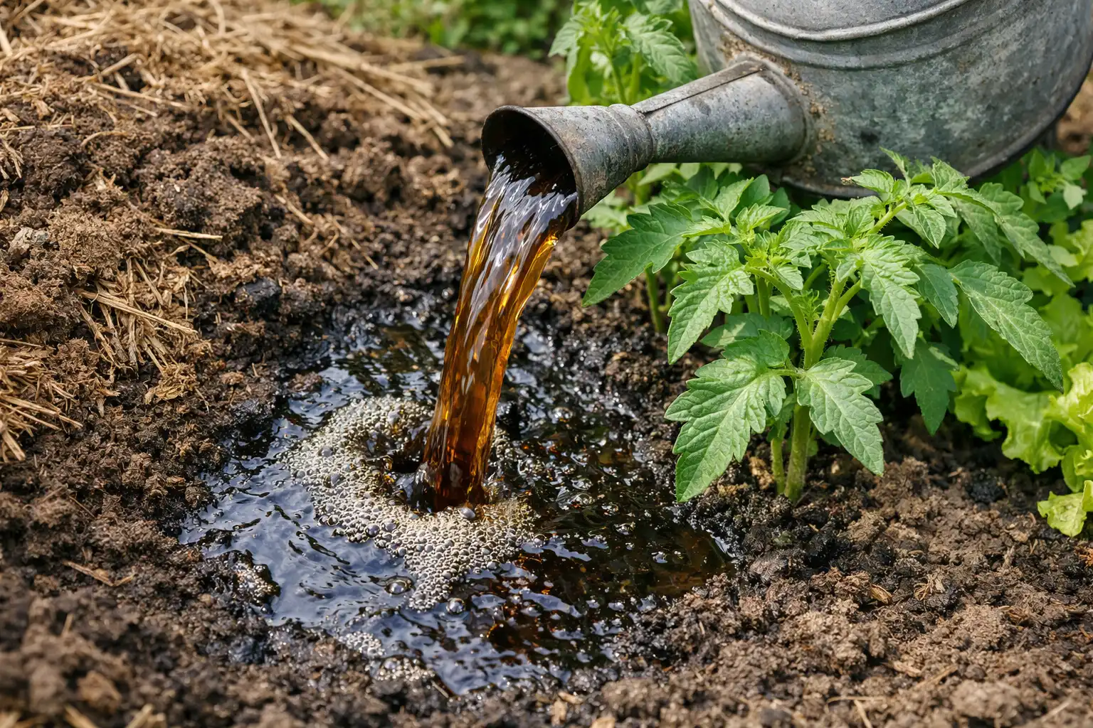 Utilizarea infuziei de gunoi de grajd imediat după dezghețarea solului permite livrarea azotului direct la rădăcini sub formă biodisponibilă, oferind plantelor un start vegetativ rapid și siguranța unei dezvoltări organice fără riscul de a „arde” răsadurile cu granule minerale sintetice.