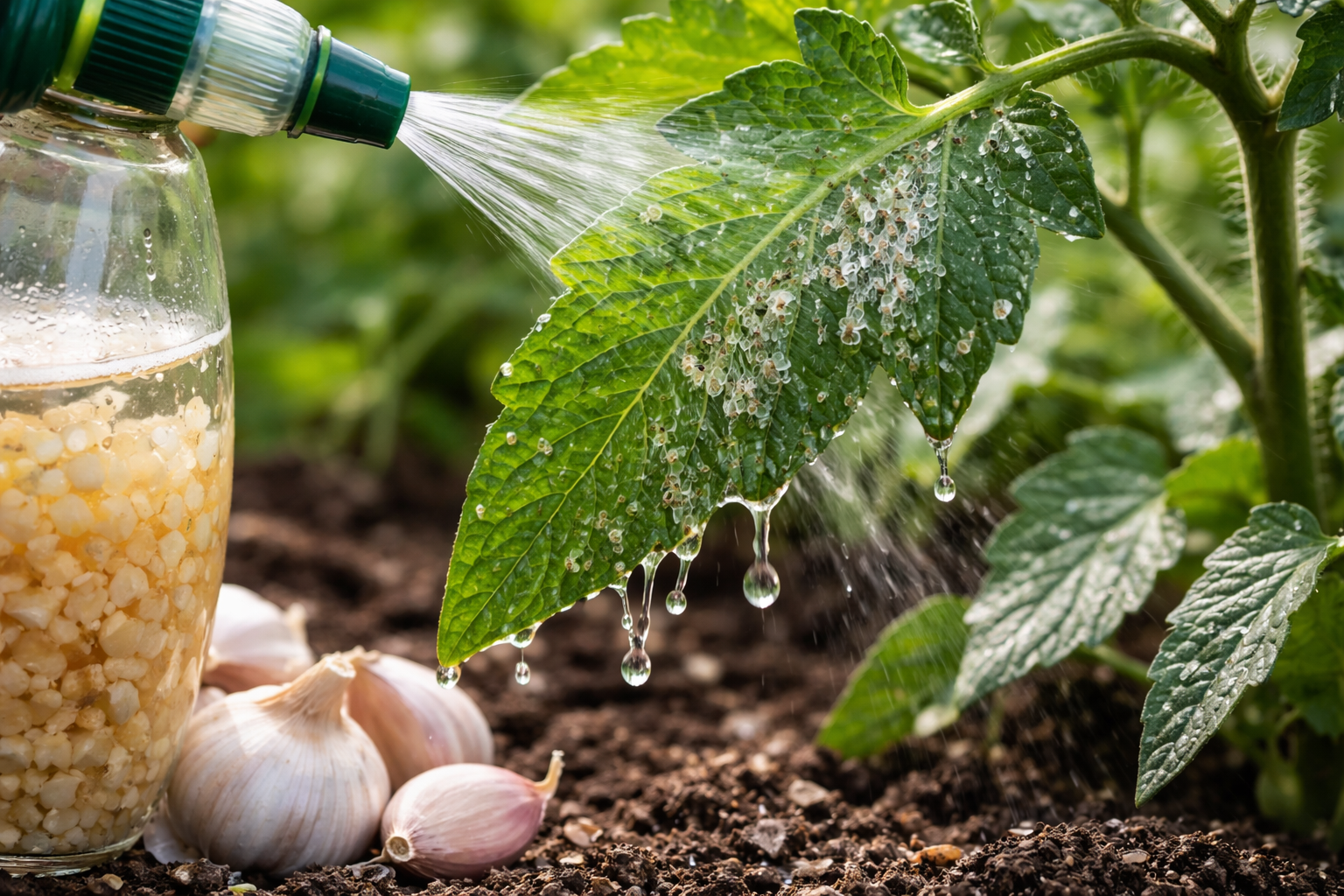 – Se spală frunzele de roșii cu o soluție de săpun de rufe. – Utilizați o infuzie usturoi (150 de grame de cuișoare tocate pe litru de apă, se infuzează timp de 5 zile și se diluează 6 ml pe litru). – Încercați să pulverizați cu infuzia yarrow.