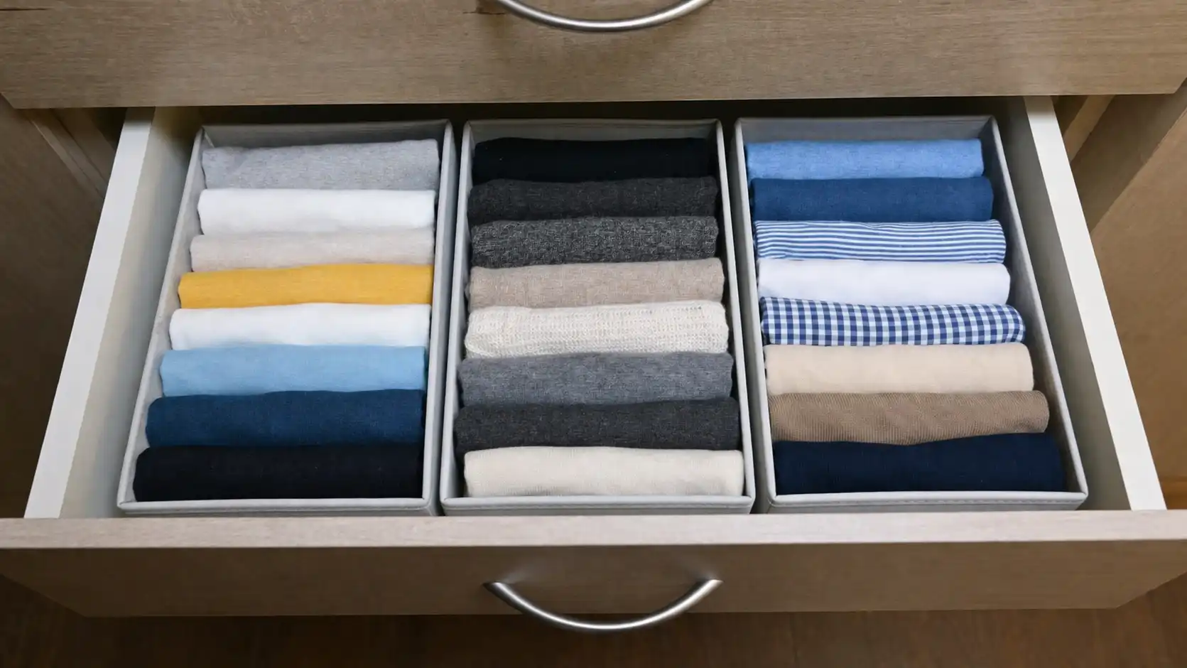 Utilizați separatoare pentru sertare adânci, pentru zonarea spațiului pentru diferite tipuri de textile de casă