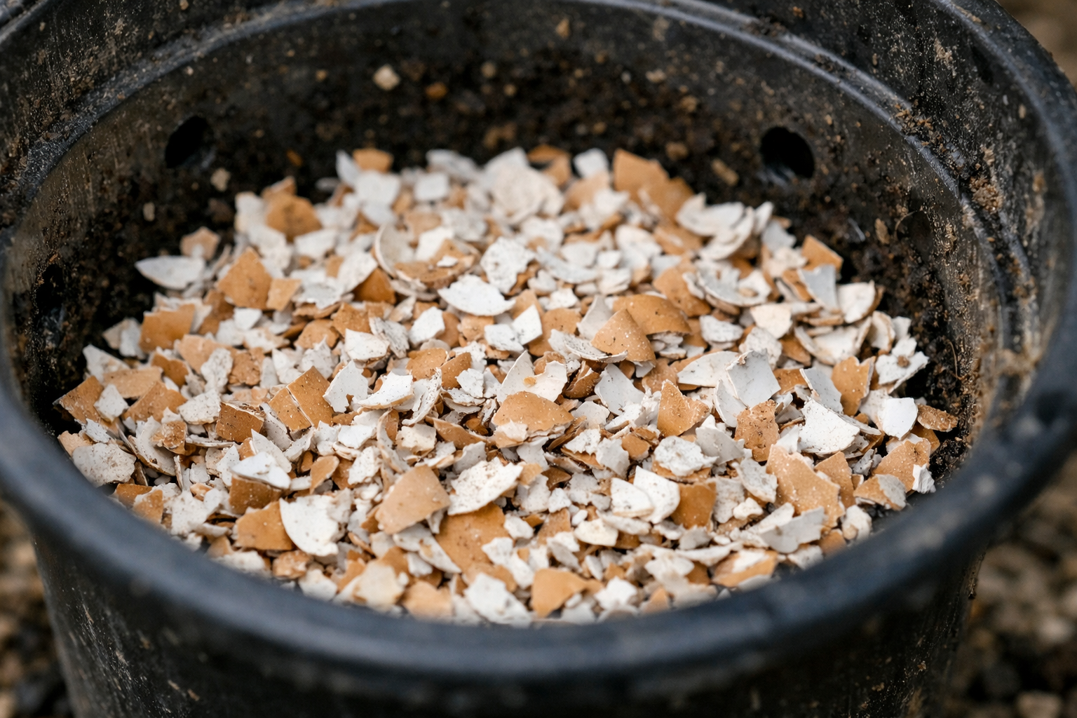 Utilizarea reziduurilor organice primăvara este deosebit de relevantă pentru culturile sensibile la nivelul de calciu. Când este așezată pe fundul vasului, coaja cedează încet substanțele benefice, ceea ce elimină riscul de supradozaj.