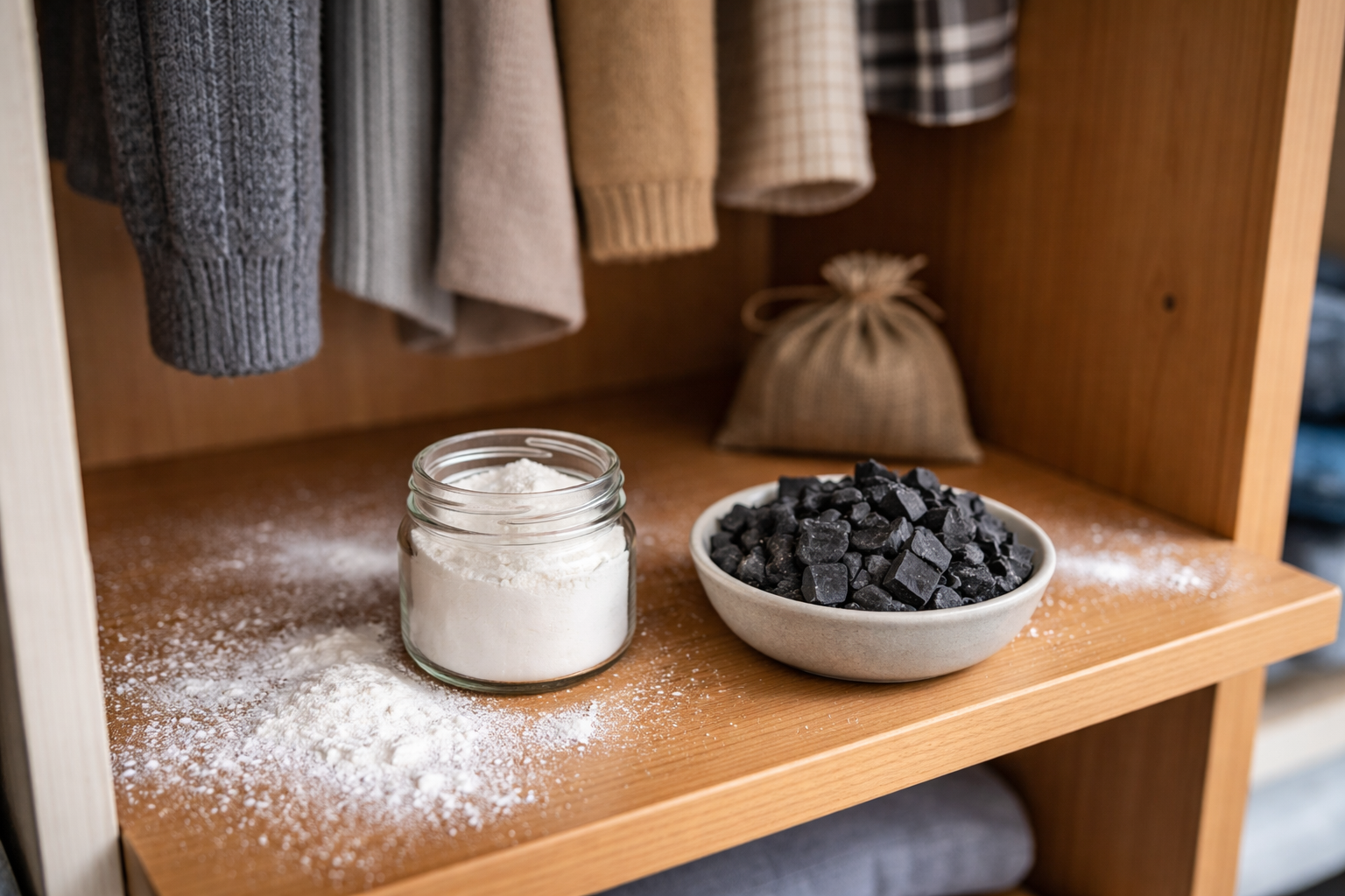 Țesătura absoarbe umezeala ca un burete. Pudra obișnuită adesea nu reușește să facă față mirosului de „cufăr vechi”.