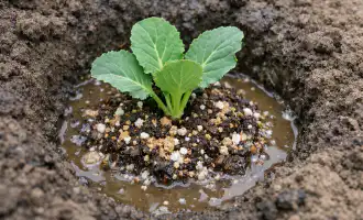 Amestecați bine cu solul înainte de a pune rădăcina plantei.