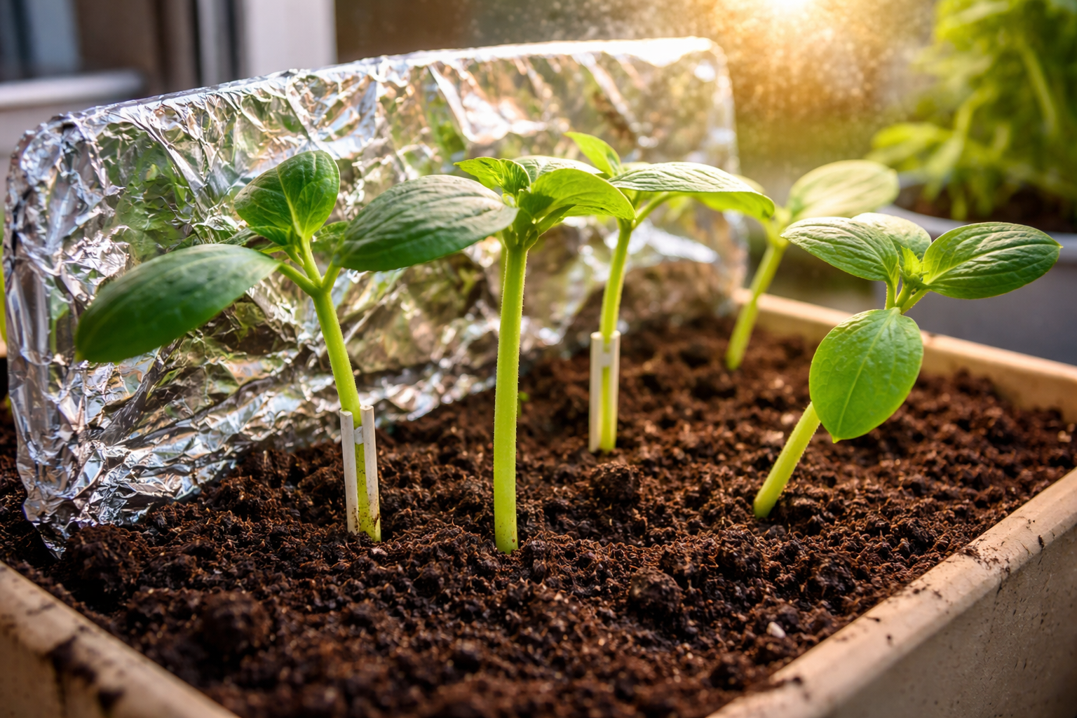 Plasați un ecran de folie sau o oglindă în spatele răsadului pentru a reflecta lumina diurnă reziduală.