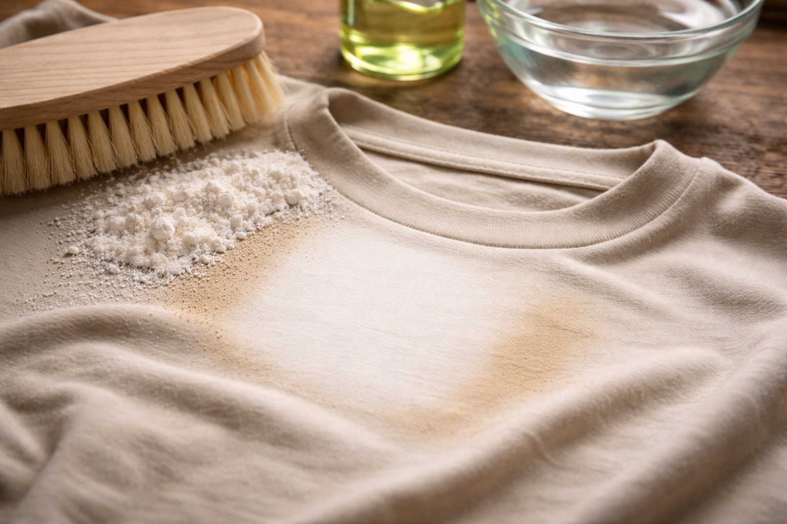 | Pată pe mătase | Talc sau pudră pentru copii | 2-3 ore |