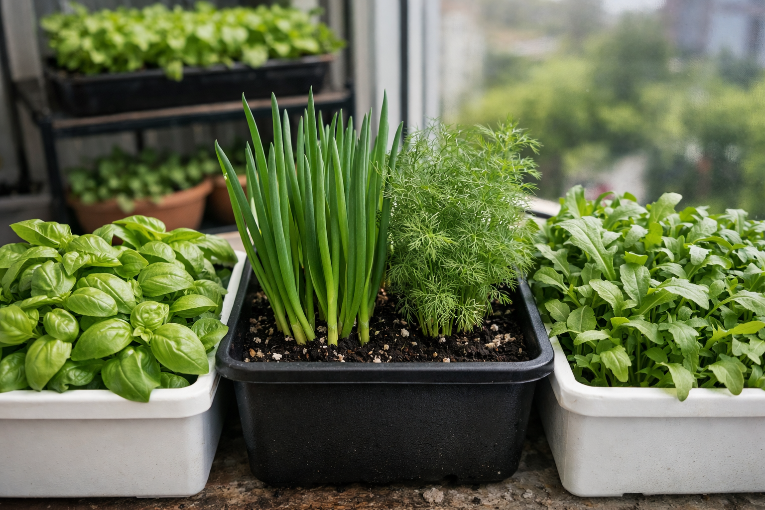 Cel mai bine este să începeți cu busuioc, mentă și salată cu frunze, deoarece acestea sunt iertătoare față de micile greșeli de îngrijire.