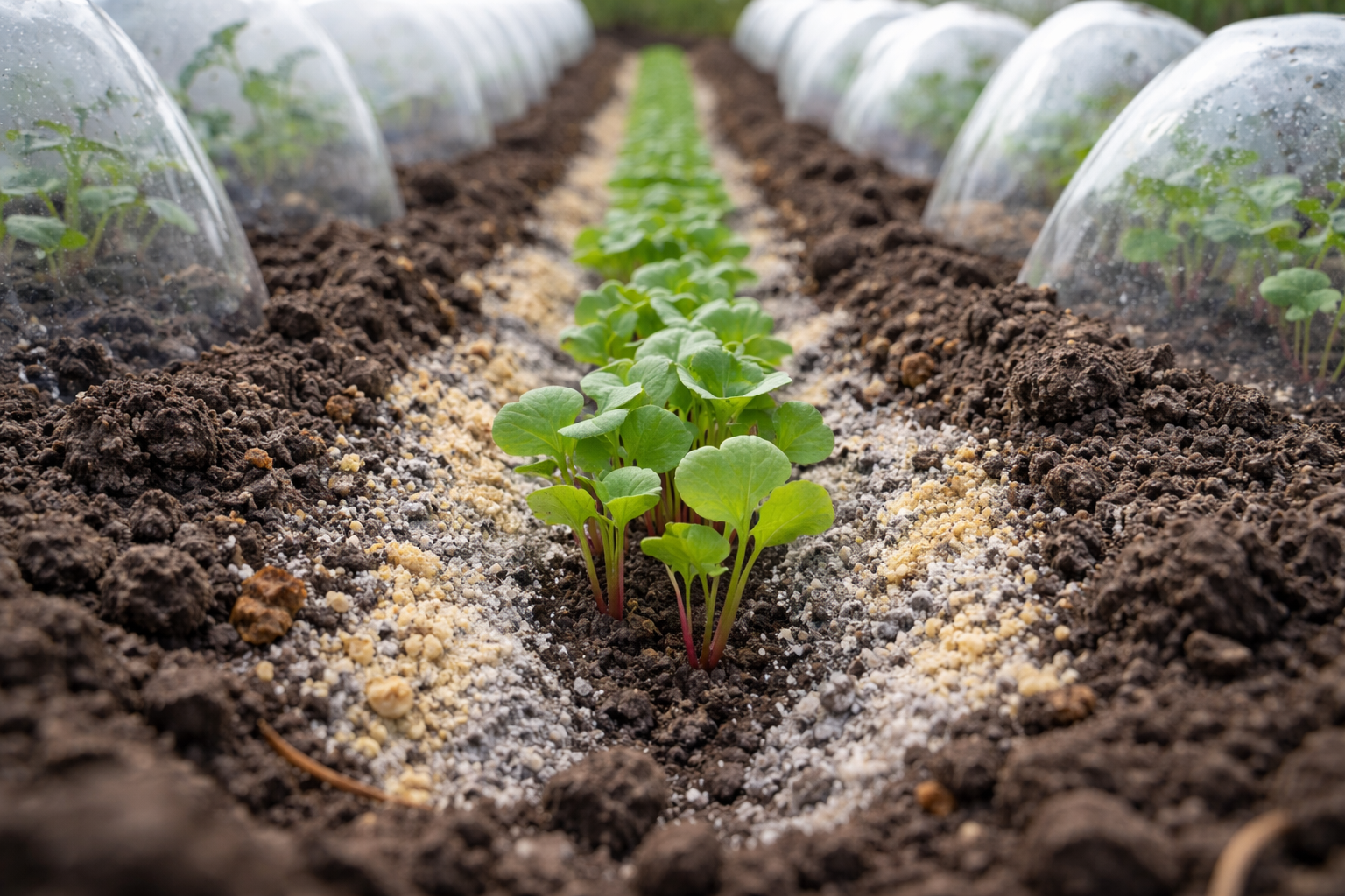Pentru rezultate ideale, uitați de bălegar. Acesta face ridichile „goale” și urâte. Eu folosesc cenușă de lemn и tort de muștar. Acestea sunt antiseptice naturale care atât hrănesc solul cu potasiu, cât și descurajează inamicul principal – puricele cruciferelor.