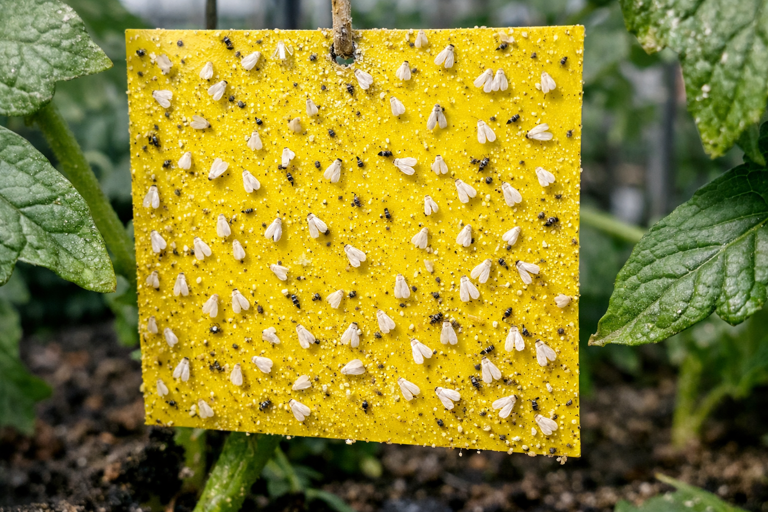 Sfat secret: Muștele albe adoră culoarea galbenă. Atârnați la nivelul vârfurilor plantelor cartoane galbene strălucitoare de casă unse cu un strat de lipici entomologic sau vaselină obișnuită. Acest lucru va ajuta nu numai la uciderea unei părți a populației, ci și la detectarea la timp a începutului atacului.