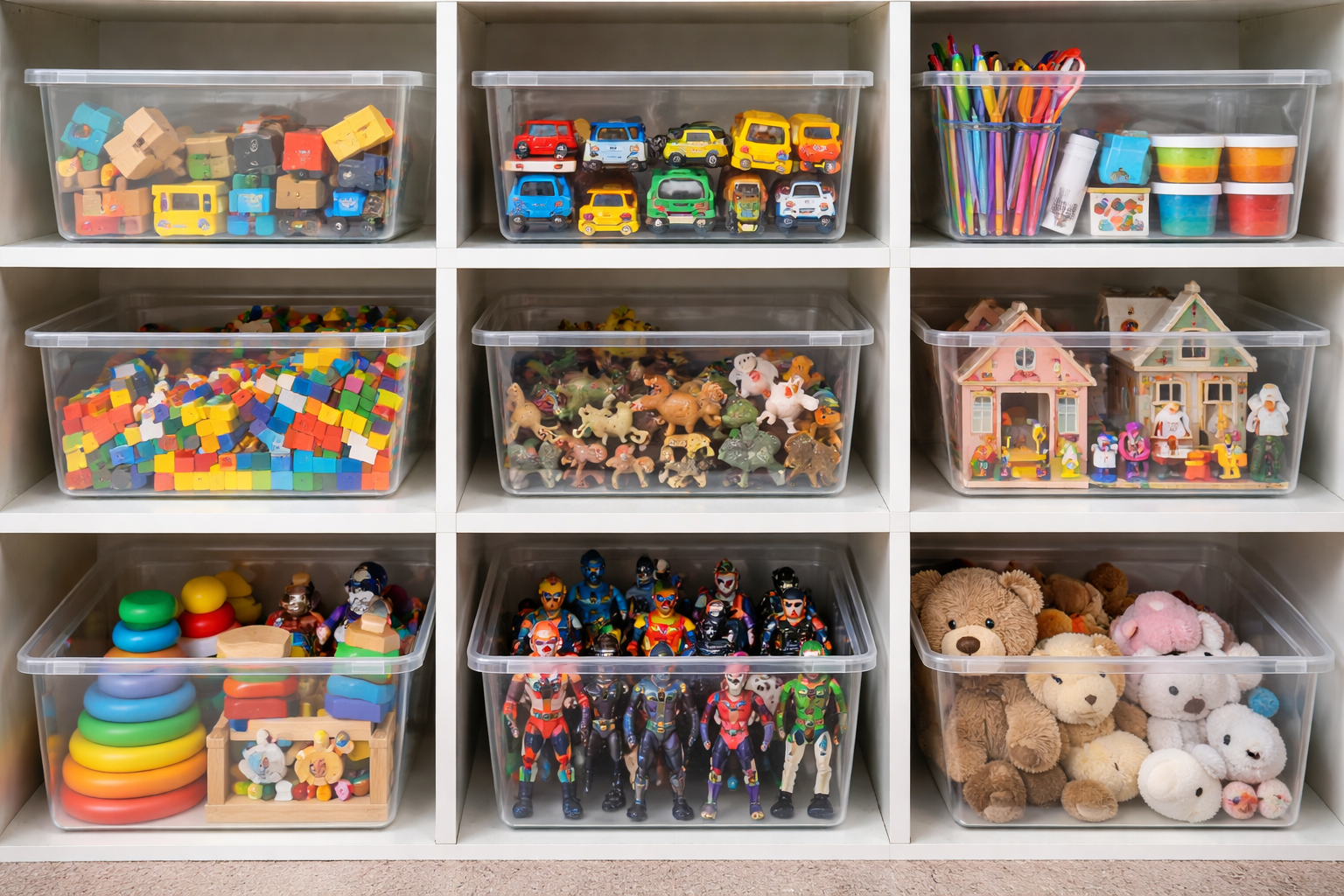 Sortarea jucăriilor economisește câteva ore de timp pentru părinți pe săptămână și reduce simțitor nivelul de zgomot din casă.