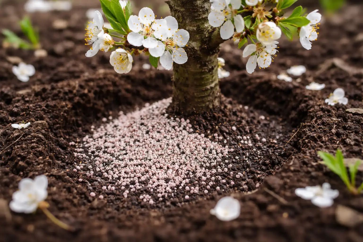 Răspândiți uniform îngrășământul selectat pe raza coroanei