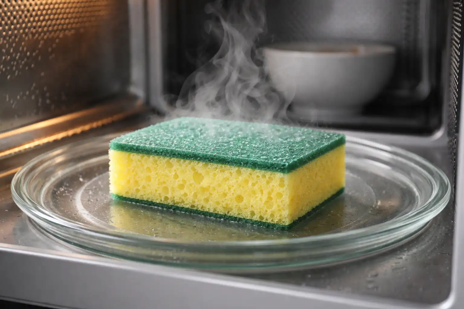 Secretul: buretele trebuie să fie umed înainte de încălzire, în caz contrar materialul poros pur și simplu va lua foc în interiorul camerei din cauza frecării puternice a cuptoarelor cu microunde.