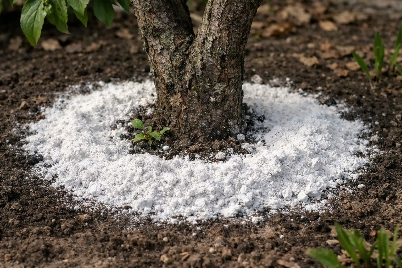 Aplicarea de primăvară are propriile subtilități, în funcție de vârsta și starea pomului. Pulberea trebuie împrăștiată în jurul portaltoiului înainte ca toată zăpada să se topească sau încorporată ușor în solul vegetal în timpul primei afânări de primăvară.