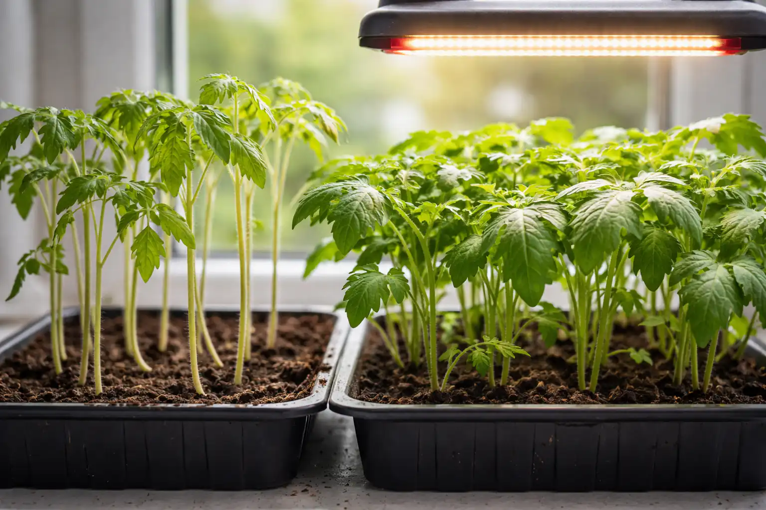 În fiecare sezon, grădinarii se confruntă cu aceeași nenorocire – răsadurile de roșii de pe un pervaz la umbră devin subțiri, pipernicite și palide. Lipsa luminii face ca răsadurile să se întindă în sus de la ultima putere, subțiind tulpina. Vă voi arăta un algoritm de acțiuni încercate și testate care vor opri rapid tragerea și vă vor face răsadurile puternice și viguroase fără probleme inutile.
